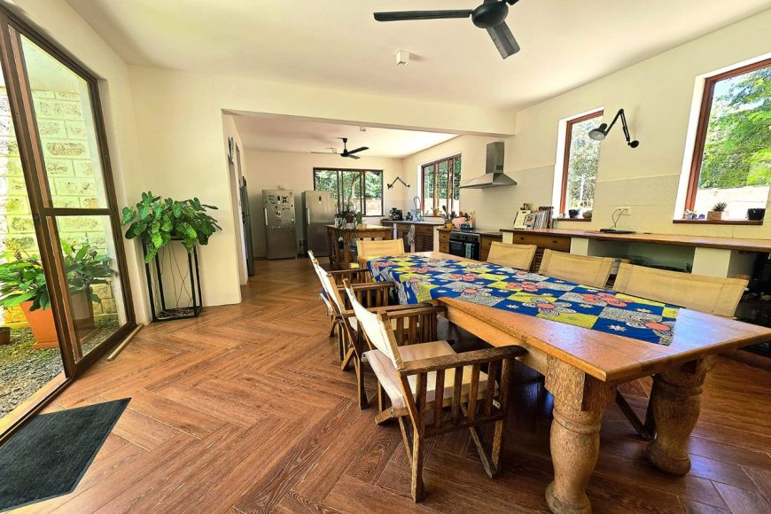 There are 3 bedrooms located on first floor, all ensuite bathrooms plus an additional spare room, ideally used for a gym or reading zone. An addtional bedroom and bathroom is on groundfloor. All bedrooms are equipped with a/c and fans. The modern layout of the villa is based on an open philosophy integrated into nature.