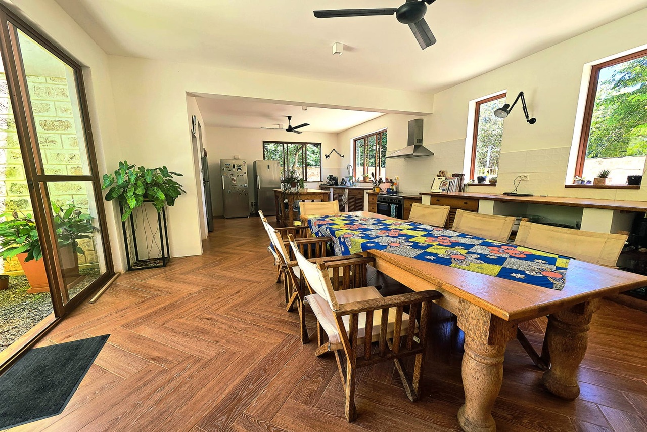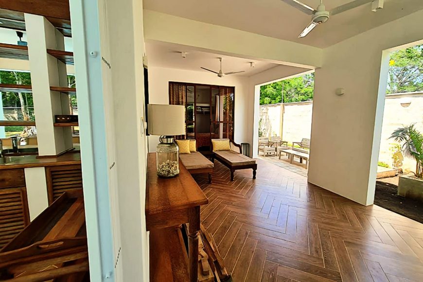 This beautiful villa is perfectly located in 2nd row in central Diani. It is only some 300m distance to the beach and an easy walk across the road. The property is directly accessible from the main Diani Beach Road. There is sufficient on-site parking. The plot is walled and has an electrical fence.