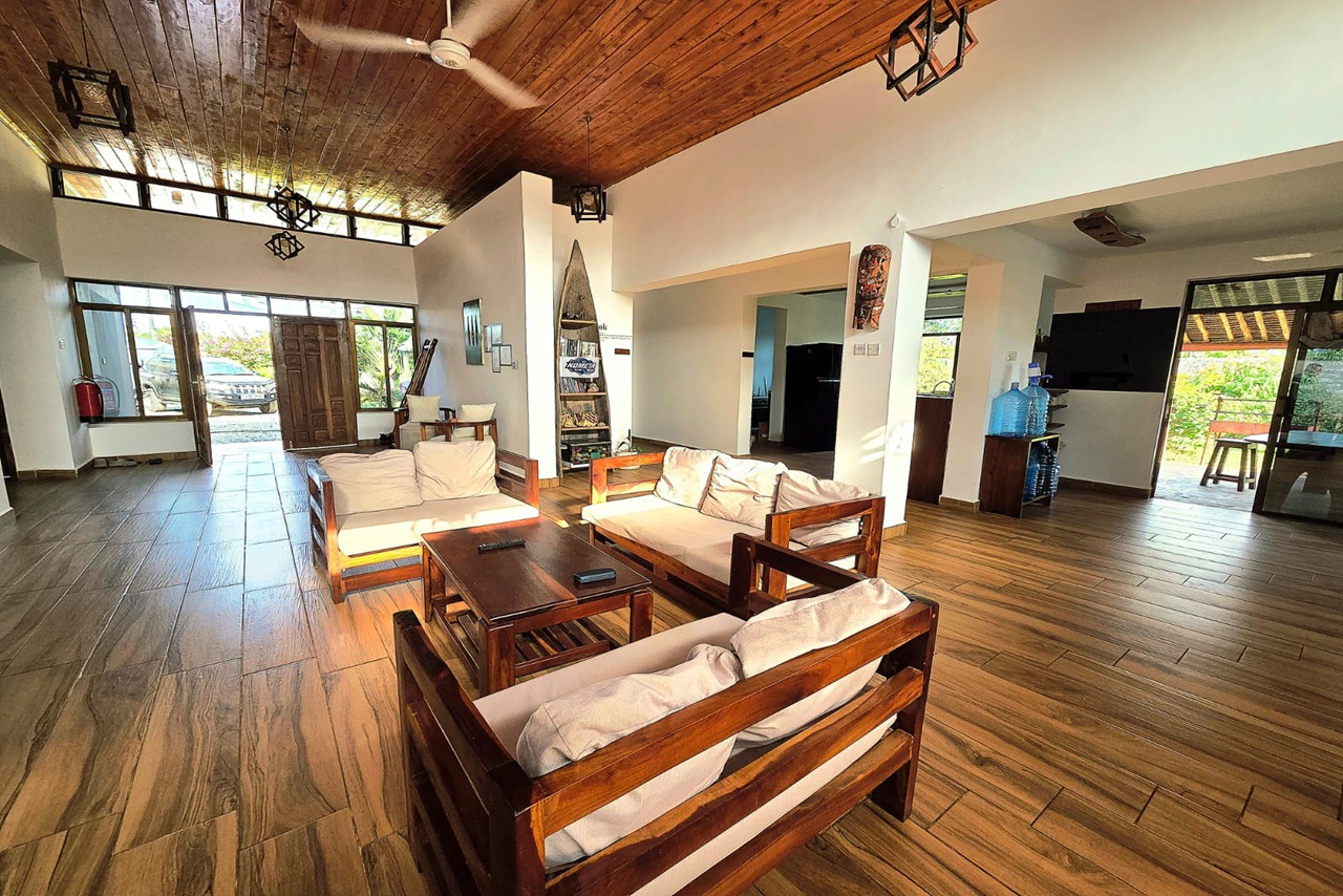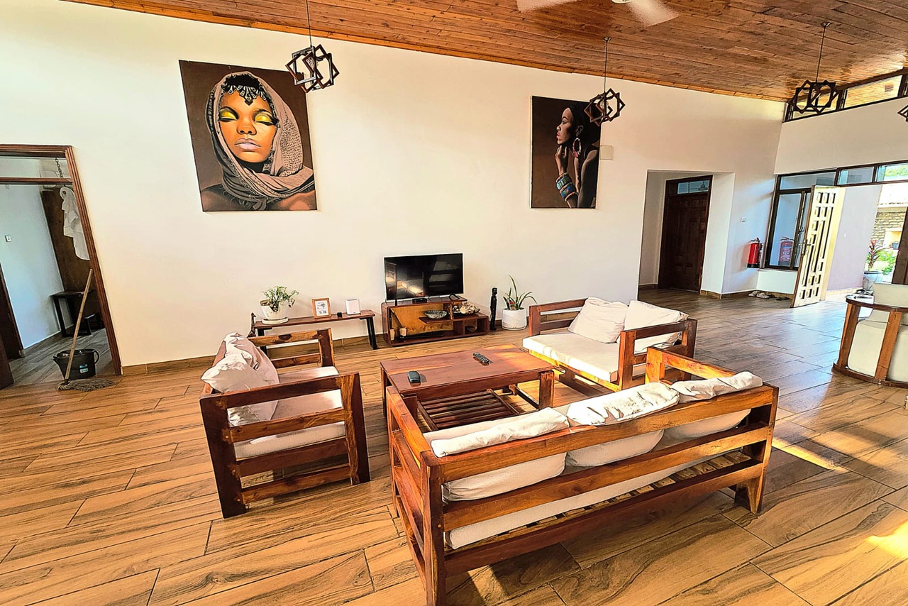 This large 6 bedroom villa of high interior standards is a real pearl in Diani and such sizes are difficult to find. The open kitchen and indoor lounge area provide a perfect atmosphere of modern coastal living – treat yourself with an amazing piece of real estate in Diani.