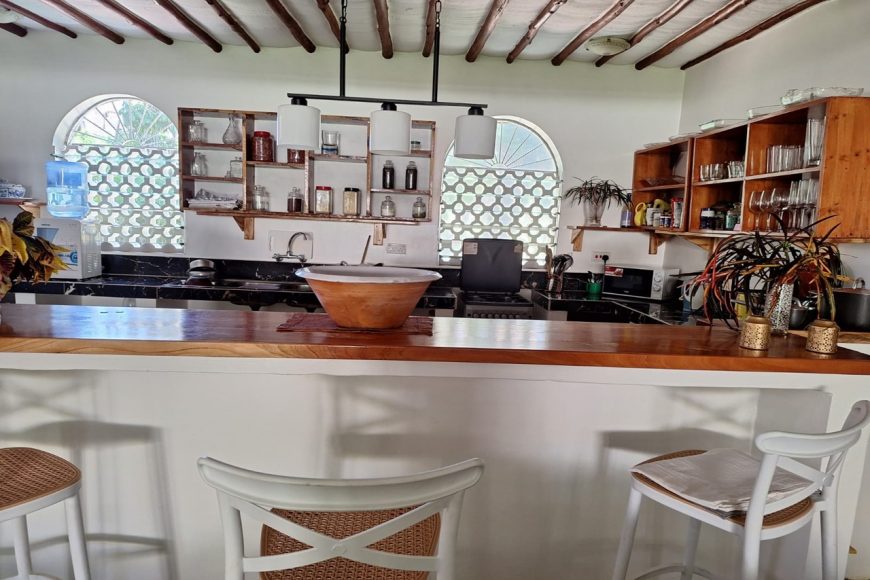 The property is walled and directly accessible from the Diani Beach Road. The main house has recently been renovated and extended by the top floor, hence the interior design and standard is not only up-to-date, it is a very modern standard and layout you will love.