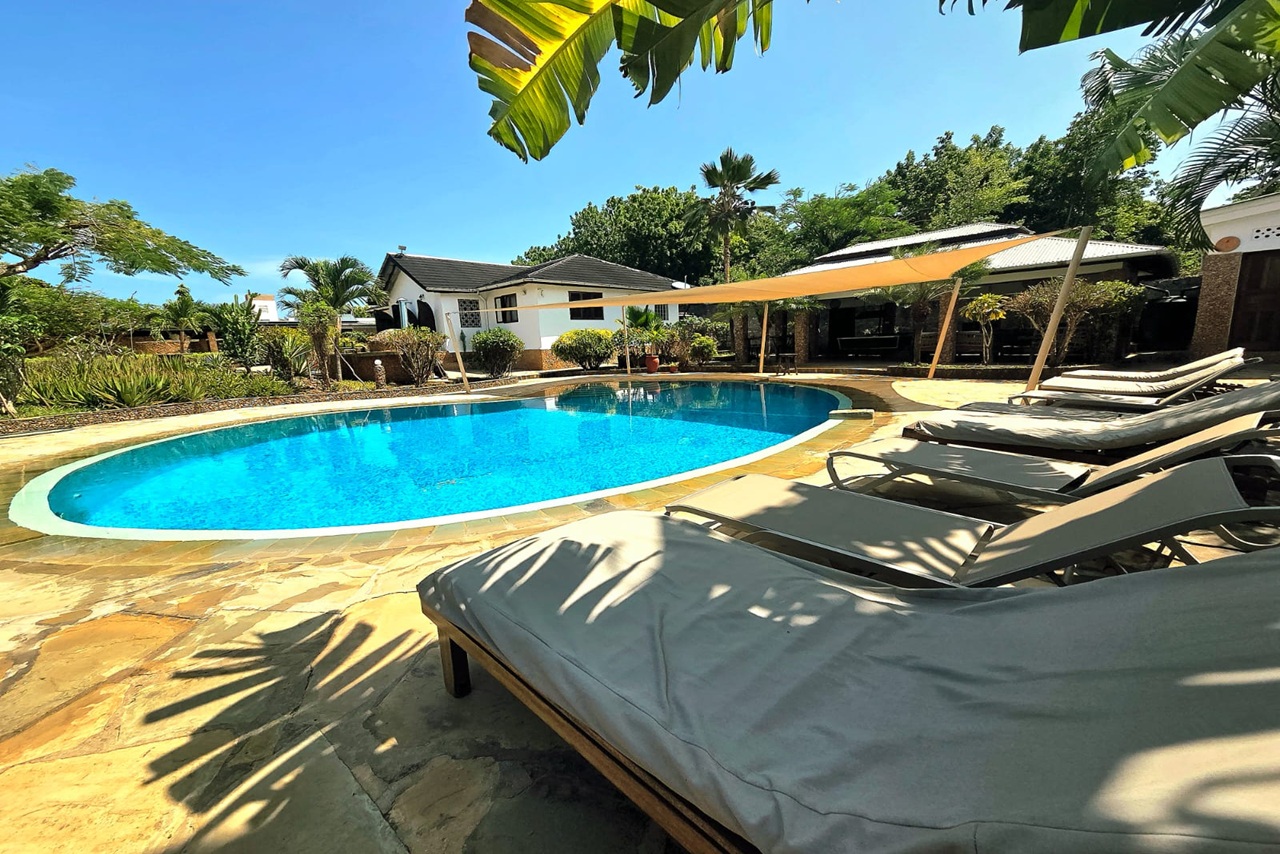 This traditional coastal villa is ideally located within 3rd row on Kongo River side and offers an amazing tropical garden and spacious outdoor roofed sitting and entertainment areas such as BBQ area, pool and table tennis area, covered pool, outdoor lounge area by the pool etc. The estate has a main villa with 2 bedrooms and bathrooms plus 2 seperate guest house2 with 1 and 2 bedrooms each. So in total the property provides 5 bedrooms plus additional sleepig options in the attic.