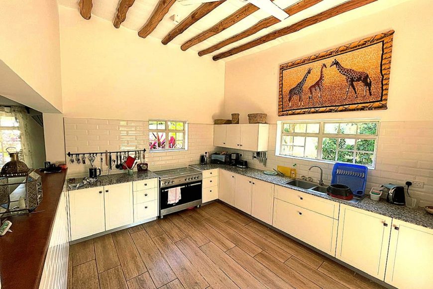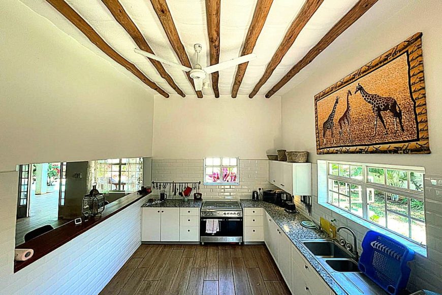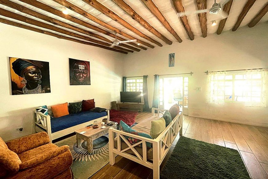 This newly built 3 bedroom villa is located in central Diani and is within a walled and fenced compound. The villa is perfectly located within 3rd row, only a few minutes walk from the sandy beaches in Diani. The villa has been built as a family home on a 1,000 sqm plot with a nice roofed terrace.
