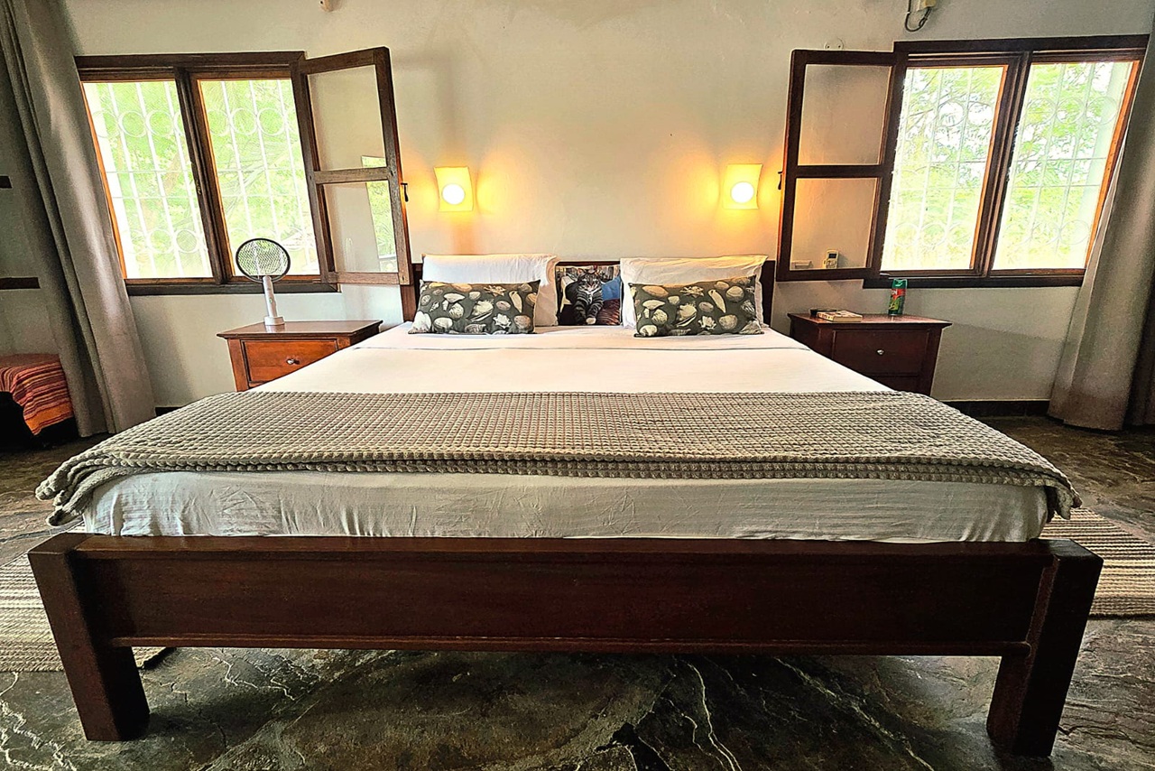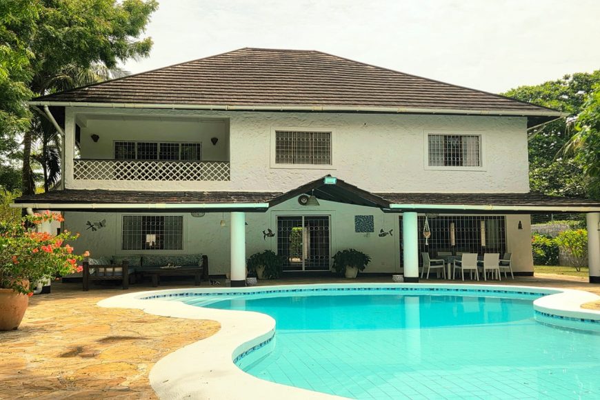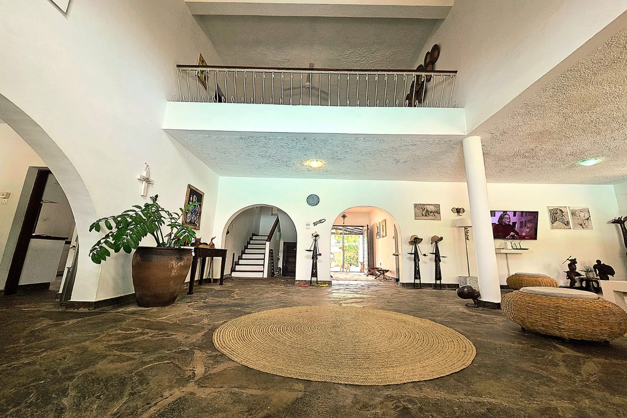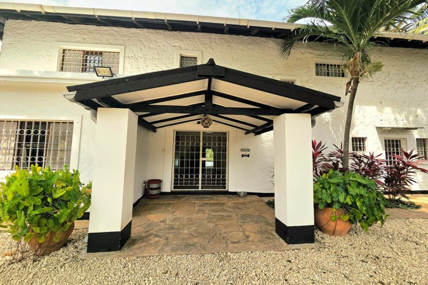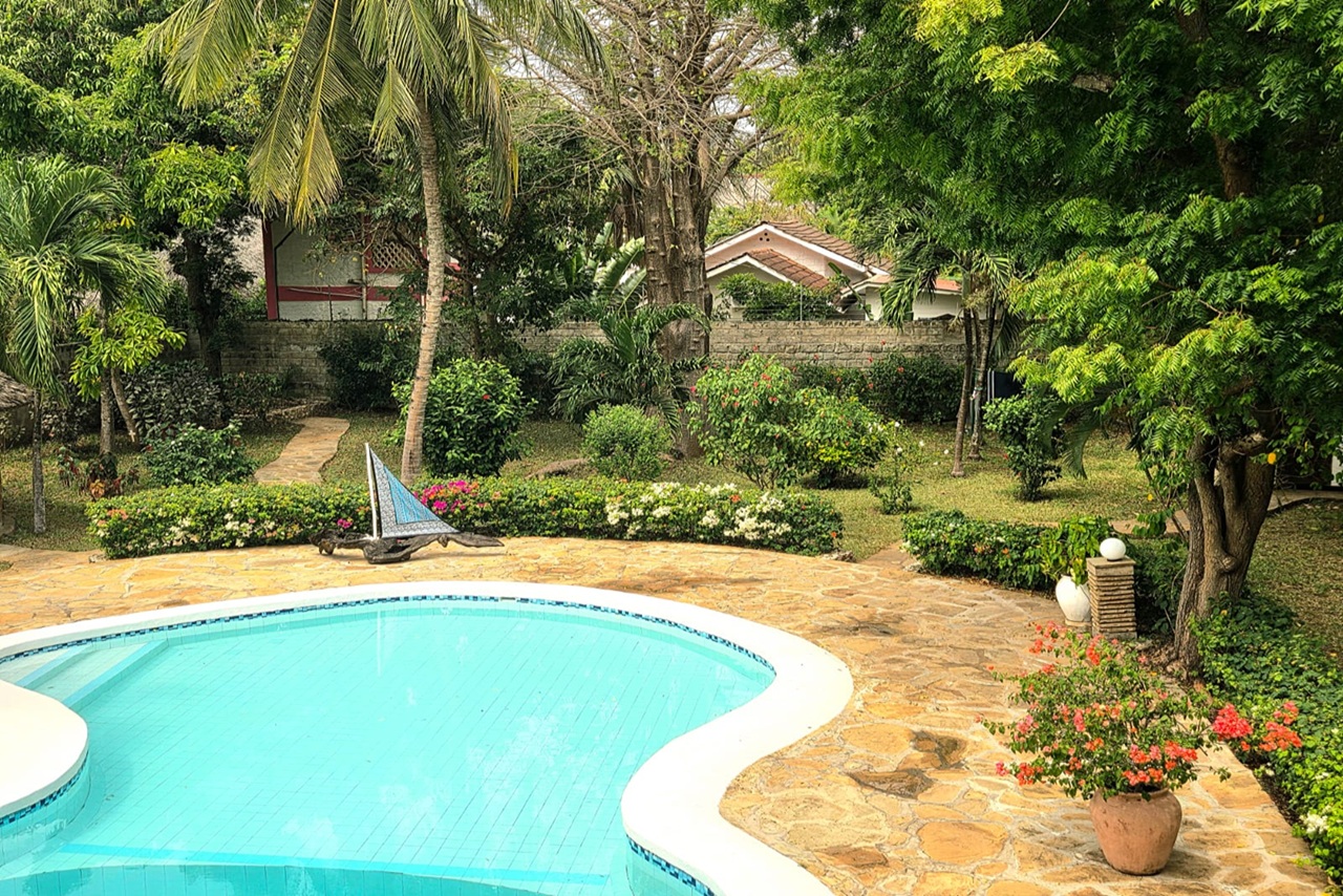 This spacious 4 bedroom villa with a separate guest house is perfectly located within 2nd row in absolute central but extremely quiet Diani location; all amenities such as shopping, restaurants, international school and medical facilities are within walking distance. The plot sits nicely in a very quiet international neighbourhood.