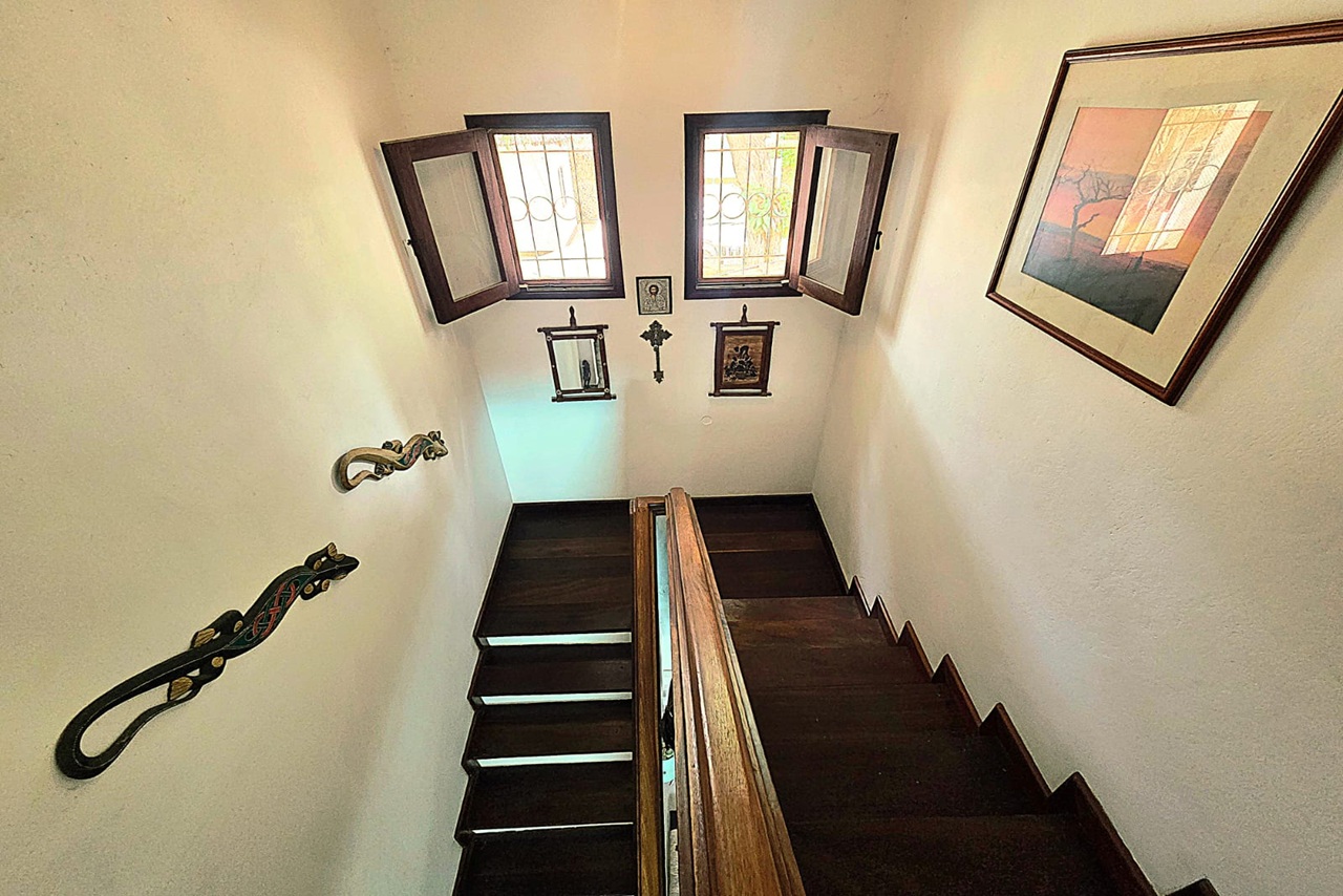 There is a seperate guest house/studio at the entrance of the plot with a self-contained cottage. The property is walled and has an electrical fence as well as an electrical gate for all the convinience you deserve. The drive-in allows for an enormous amout of space, so does the large carport which can easily fit 3 larger cars. The villa with its large pool and garden area has been used as a private family home over years and is well taken care of. It is ready for you to move in immediately.